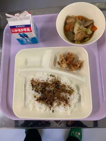 鶏肉のたつたあげ あつあげと野菜の煮もの おかかなっ葉