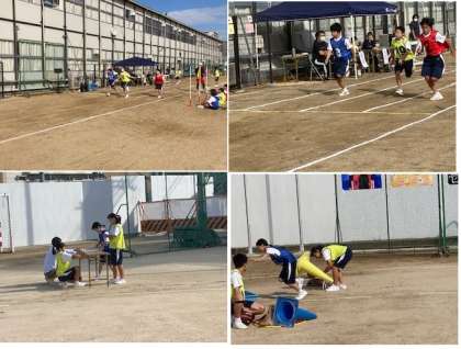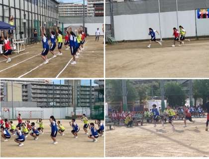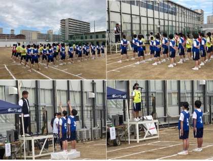 10月13日(火)は、9日(金)に雨天のため順延となりました長吉スポーツデイを行っています。1・2時間目は1年生の競技を行いました。校長先生からは協力する心、みんなと合わせる心、我慢する心の3つの心を持って臨んでほしいとお話がありました。