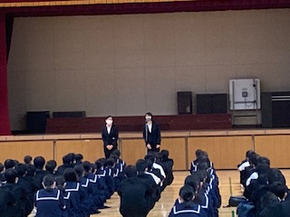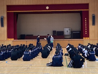 10月19日(月)の朝、全校集会を行いました。本日は、