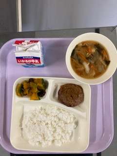和風ハンバーグ みそ汁 かぼちゃのいとこ煮
