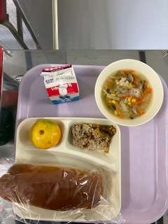なすのミートグラタン 鶏肉と野菜のスープ みかん