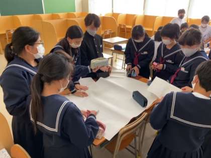 1年生は「コロナ禍において今、わたしたちができること」について取り組んでいます。各班で調べた内容を壁新聞として作成しています。そして新型コロナウイルスによる差別をなくし、各々が個人として出来ることをやってみようということでシトラスリボンを作成しています。保護者のみなさまには文化発表会の様子をホームページでお伝えしていきます。