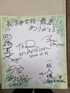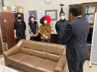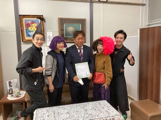 パフォーマンスが終了した後、to R mansion様は校長室へ来られて校長先生にご挨拶されました。長吉中学校の子どもたちは「ノリが良く、熱心に鑑賞してくれました。公演してきた学校の中で子どもたちは一番です。」とお褒めの言葉をいただきました。