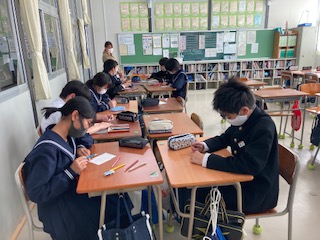 11月6日(金)の6時間目に、1年生は学級で病院で働く方々にありがとうの感謝の気持ちを届けるために応援はがきの作成を行いました。当たり前の日常が失われ、今も多くのお医者さん、看護師さんをはじめ多くの方々が新型コロナウイルス感染者の治療にあたっておられます。1年生は文化発表会で「コロナ禍において今、わたしたちができること」について取り組みました。更に1年生としてコロナ差別・偏見をなくすために取り組みます。