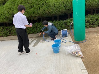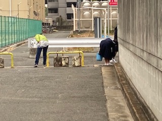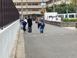 11月13日(金)の朝午前7時30分より、生徒会の子どもたちと生徒会担当の教職員は校区内の清掃活動を行いました。