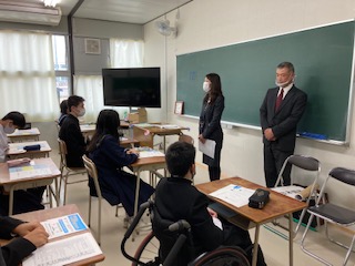 11月13日(金)の6時間目、2年生は株式会社 富士精機の田村様、犬の家庭教師のみつの塾の光野様、大阪府行政書士会の黒田様、野口様にお越しいただき、職業講話をしていただきました。2年生の子どもたちは伺いたい講師のお話を選択して拝聴しました。