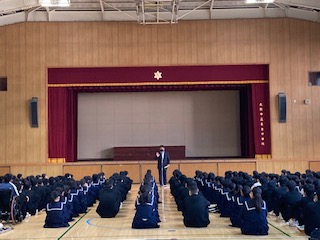 11月16日(月)の朝、体育館で全校集会を行いました。