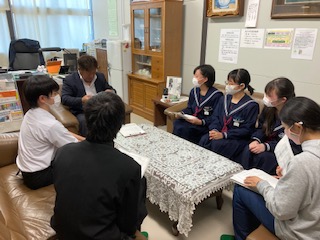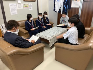 11月17日(火)の放課後、校長室で生徒会の子どもたちは校長先生と長吉中学校をよりよくするために話し合いました。
