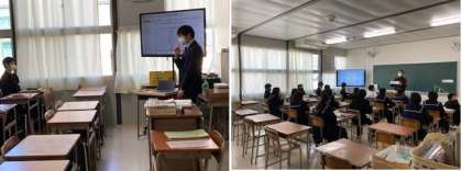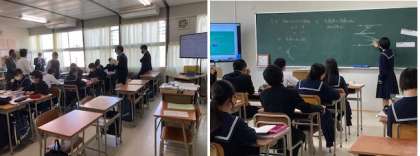 11月18日(水)の6時間目、大阪市がんばる先生支援事業を受けて公開授業研究会を行いました。数学の「平行線と角」について2年1組の子どもたちは分割授業で学びました。岩井先生、松岡先生の授業の中で「インクルーシブ教育の視点を見失わない学級・学年集団、わかる学び合う授業づくり」の本校の研究テーマに基づき、授業の中で自分と向き合い、自分を高める、他者とつながることが子どもたちができているかを教職員が授業者の授業を見ながら学びました。