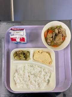 卵どうふ 鶏肉と一口がんもの煮もの 野菜のそぼろいため