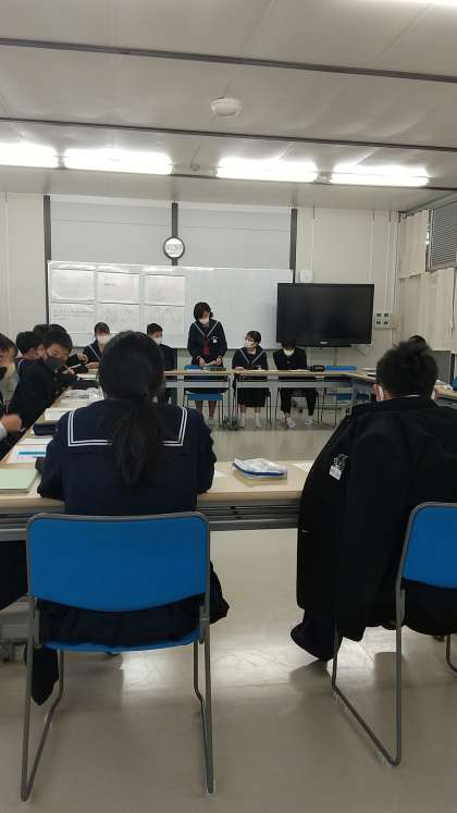 12月14日(月)の放課後、生徒議会が行われました。先月話し合った各クラスの現状について改善策を話しあって報告したり、執行部から次の取り組みや22日朝に実施予定のクリーンアップ活動についての参加申込書配布のお願いなど、内容の濃いものになりました。