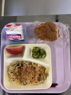 和風焼きそば きゅうりの甘酢あえ りんご