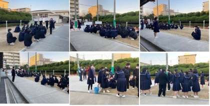 12月22日(火)の午前7時30分、生徒会執行部の子どもたちが中心となって有志の子どもたち、教職員で第5回クリーンアップ活動を行いました。たくさんの子どもたちが集まり、8グループに分かれて地域を清掃しました。