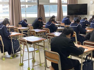 3年生は7日(木)に中学生最後の実力テストを受けています。教科は国語、数学、英語の3教科です。3年生のみんな、がんばれ!