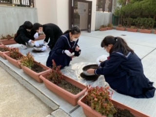 13日(水)の生徒委員会で環境委員会の子どもたちはプランターの植え替えを行いました。寒さは厳しいですが、お花を植え替えることで春を迎えたいと思います。環境委員のみんな、ありがとう!