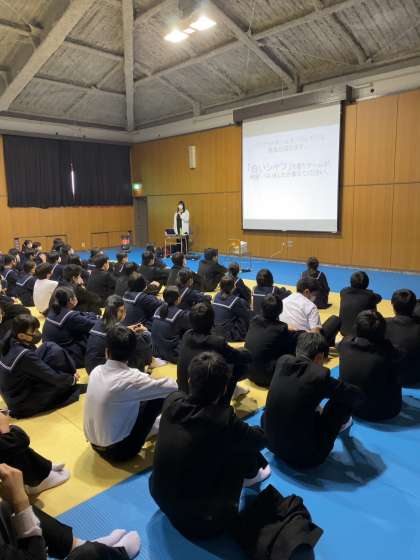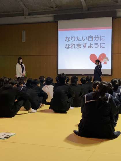 1月22日(金)、5・6時間目に格技室で3年生は辻由起子先生の「幸せになるための恋愛・人生講座」を受講しました。
