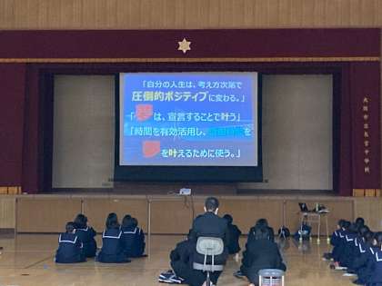 2月26日(金)の5・6時間目に体育館で3年生は木戸俊介さまをお迎えしてこれからの未来を見据えてお話を伺いました。木戸俊介さまは多彩な方でコンテンツプロデューサー、NPO法人須磨ユニバーサルビーチプロジェクト代表、筑波大学蹴球部スポンサー局、Re:Walk Project 主宰、(株)スイッチオンサービス広報課、(株)D&I、キッチンカーHERO、スポーツ×教育事業「HUMAN DEVELOPMENT ACADEMY】設立等を手掛けておられる起業家です。