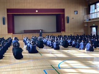 大阪は緊急事態宣言が解除されました。3学年揃って全校集会ができるのは今日が最後です。特に3年生は、今週で最後の授業が出てくると思います。しっかりと話を聞いてほしいと思います。