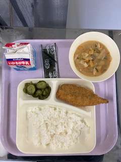 いわしのフライ みそ汁 きゅうりの赤じそあえ