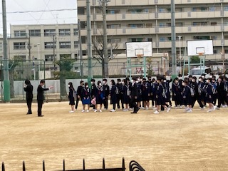 3年生がいよいよ中学校と別れるときが来ました。保護者のみなさま、在校生に見送られながら花道を通って中学校を卒業しました。