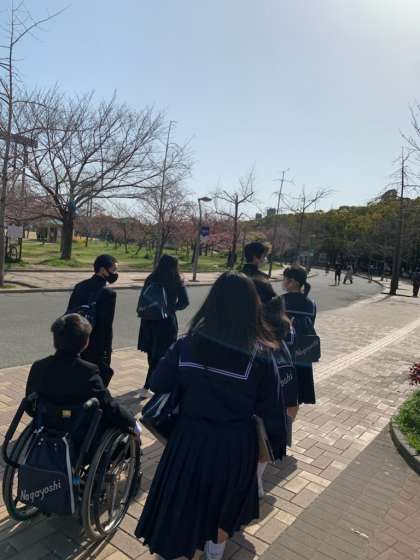 3月19日(金)、晴天のもと2年生は新型コロナウイルス感染拡大防止の緊急事態宣言が大阪府に発出されたため延期になっていた校外学習を行います。
