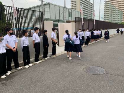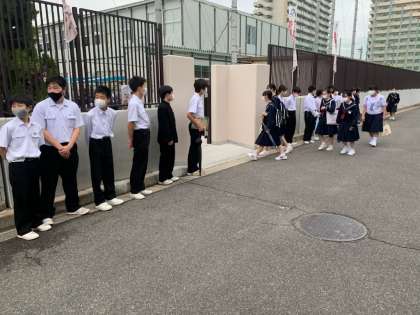 いつもの日常が戻りつつあります。生徒会中心に有志の生徒が元気に挨拶運動をしています。