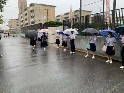 雨の中でしたが、元気なあいさつが飛び交っていました。