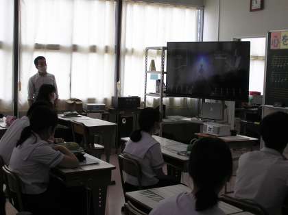 3限音楽と技術科で教科横断した授業を行いました。技術科のスピーカーを音楽の授業で活用し、鑑賞の授業を実施しました。