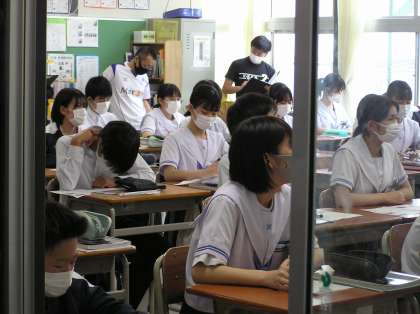 3年1組だけ残ってもらい6時間目に理科の研究授業を行いました。先生方も真剣な表情で参観していました。