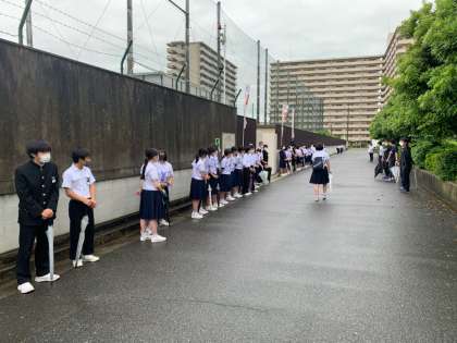 今日もたくさんの生徒による、朝のあいさつ運動が行われました。