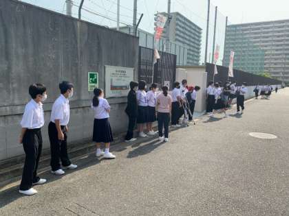 生徒会、一年学級代表、サッカー部のメンバーがあいさつ運動に参加してくれました。