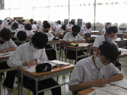 1,2組合同で保健の授業です。緊張感が伝わってきます。