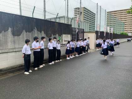 期末テストも終わり、活気ある朝が戻ってきました!今日もたくさんの生徒であいさつ運動が行われました!