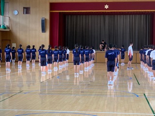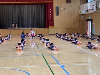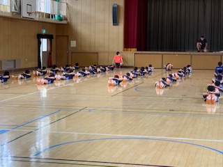 体育の授業でした。整然とテキパキ、集中して取り組んでいます。