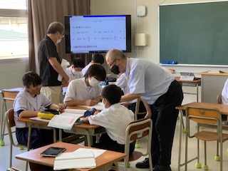 習熟度別分割授業を行っています。教育センターから学力向上推進指導員が来校され指導していただきました。