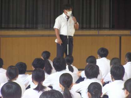 1学期も今日が最後の日となりました。今年度もコロナ禍で、71日の授業日数のなか2時間、4時間のみの授業日やTeamsでの学活、修学旅行・一泊移住の延期・中止など、行事がことごとくできないというような、まだまだ君たちに我慢を強いる1学期であったと思いますが、どの学年も自分を鍛え磨く頑張りを随所で見られたと思います。