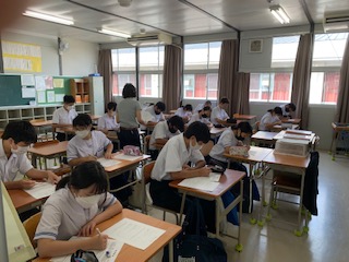 夏休みの課題提出した後、休み中の被害調査、教育相談アンケートなどを行いました。この後担当から、コロナ禍での学校生活についてなどのお話しがありました。