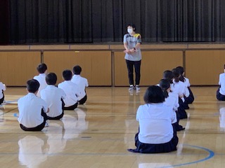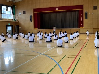 2年生は定例の学年集会がありました。松尾先生から自分の考えや思いを発信することことの必要性と大切さ、アウトプットのお話しがありました。