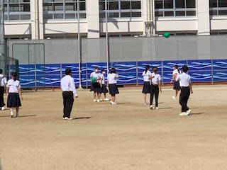 爽やか秋晴れのなか、給食後は、先生も参加してバレーボールなどで楽しんでいます。午後からも頑張りましょう。