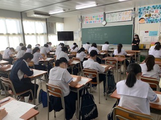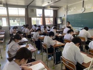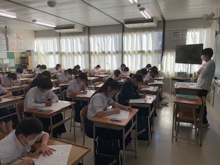 全学年で数学と英語、1年生のみ技術家庭科のテストを行いました。昨日と同じく一生懸命さが伝わってきました。