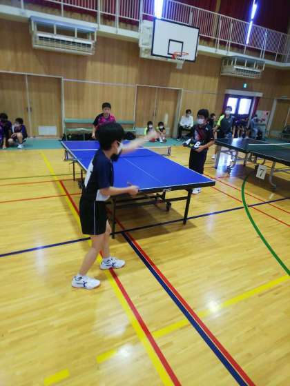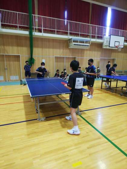 初めて公式戦に出場する人が多く、緊張していました。しかし、仲間の応援があってか試合が進むにつれ本来の力を発揮する場面がありました。1部トーナメントで4回戦まで勝ち進んだ人や2部トーナメントでベスト16まで勝ち進んだ人もいました。試合が終わって、ベンチに戻った時には「ここがだめだったから学校ではこういう練習をしていこう」など自分自身で課題を見つけたり、仲間と試合を振り返り、次に生かそうとする姿勢が見えました。表彰台に立つことはできませんでしたが、この試合で得たことを忘れず次に生かしていきましょう。