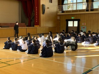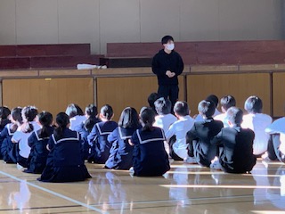 定例の学年集会です。古谷先生から、「今すること、できることをタイミング逃さず頑張ることで、一日一日を大切に過ごしましょう」とお話しがありました。