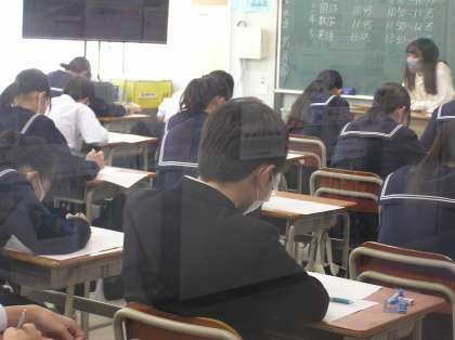 3年生は第3回実力テストを実施しました。進路に向けて一生懸命です。希望の進路をつかんでもらいたいです。