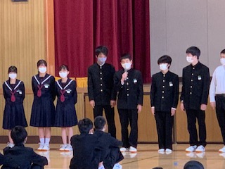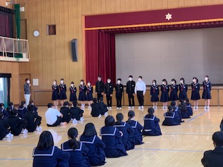 定例の学年集会です。先日行われた文化発表会について、学年の実行委員から振り返りをしました。