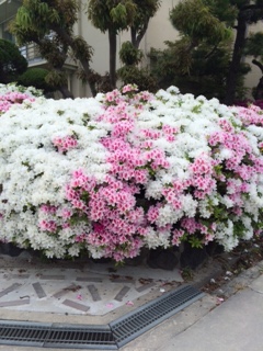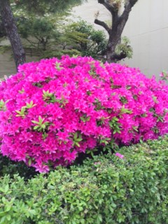 今、長吉中学校の正門横からグランド辺りにはたくさんのツツジが咲いています。ピンクや白、紫色などの種類があります。