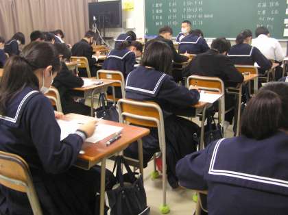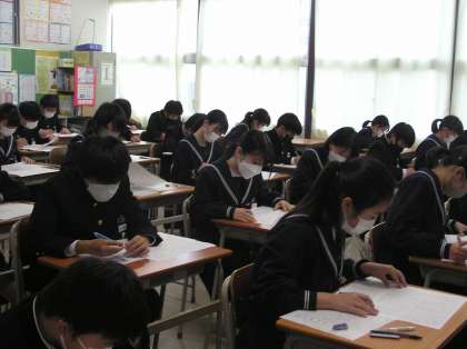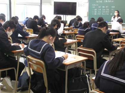 期末テストの様子です。1日目は数学・国語・1年のみ音楽,2・3年は技術家庭科でした。頑張っている姿が印象的でした。明日の祝日を有意義に使ってください。