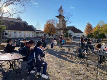 ブルーメの丘では、寒空の下でアイスクリームを頬張っています