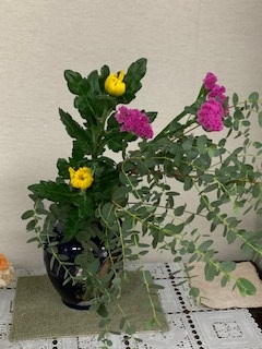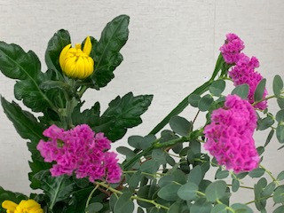 学校元気アップコーディネーターの松尾さんに、12月はスターティスと菊を校長室、職員室に生けていただきました。いつもありがとうございます。