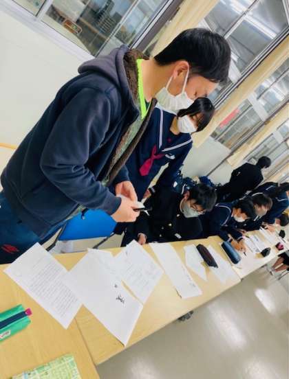 毎月中央階段にある掲示物は、生徒議会のメンバーの協力のもと生徒会で製作しています。