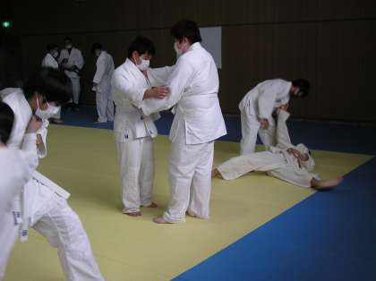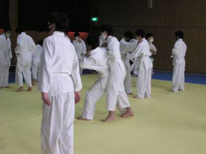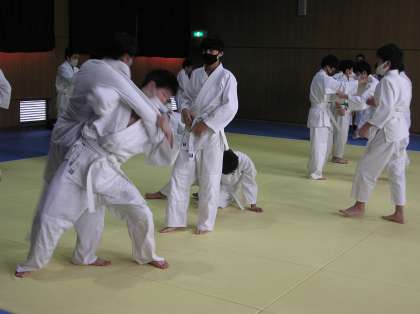 体育(男子)の授業です。柔道をしています。